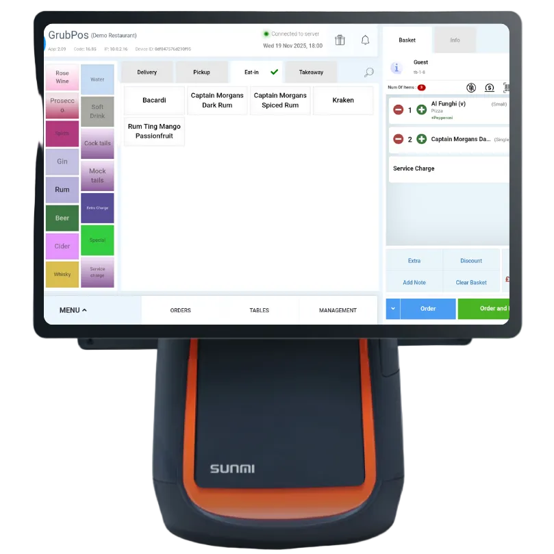 GrubPos provides a tailored EPOS system for hospitality that includes table management, allergen tracking, integrated payment processing, and real-time reporting. It also supports kitchen and local printer options, clock in/out tracking for staff, and integrations with popular delivery services, making it a comprehensive tool for restaurant and takeaway management.